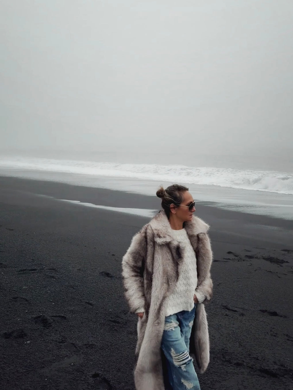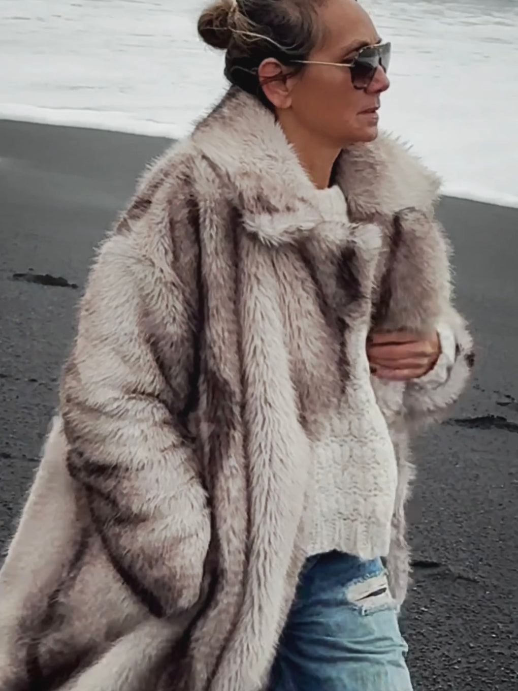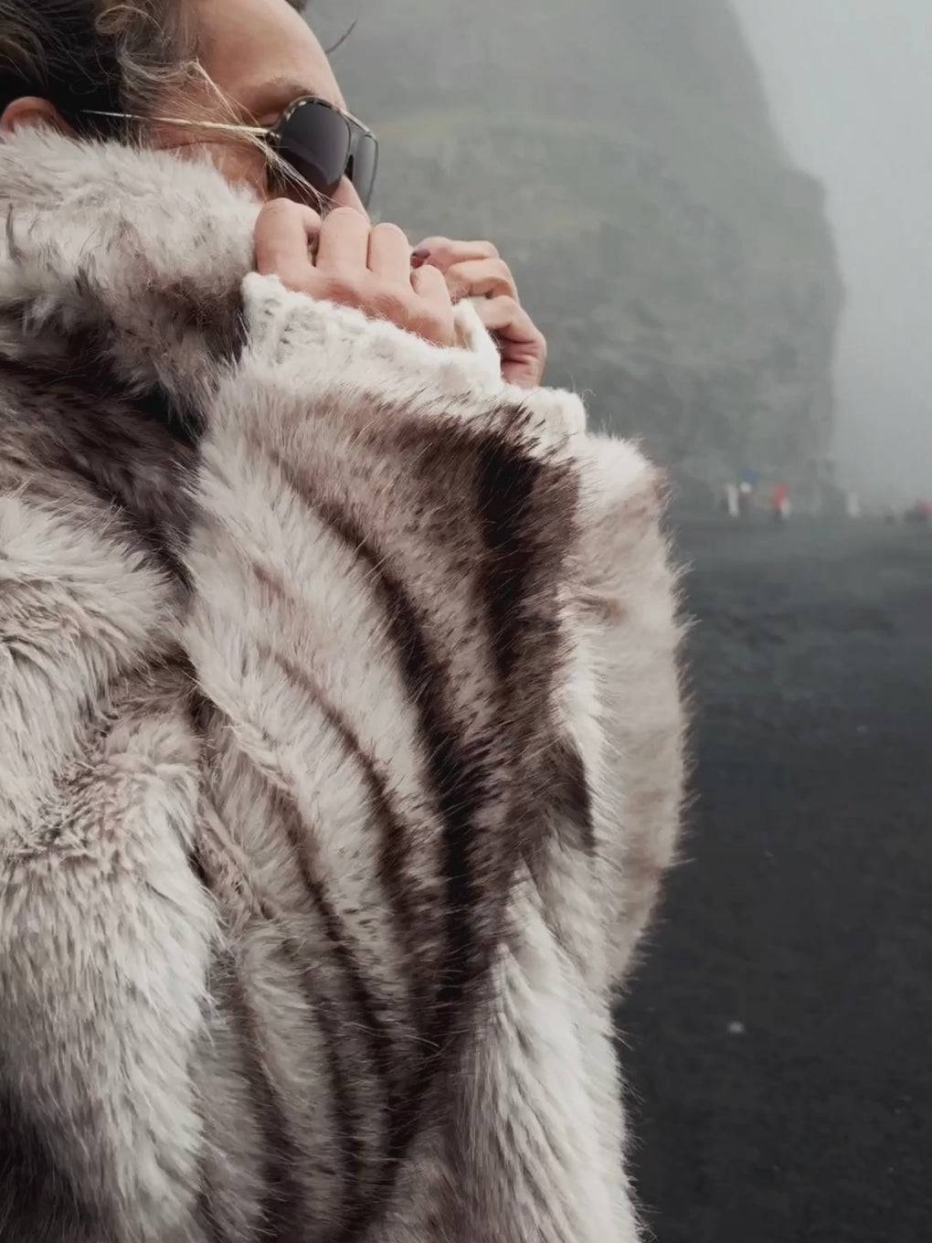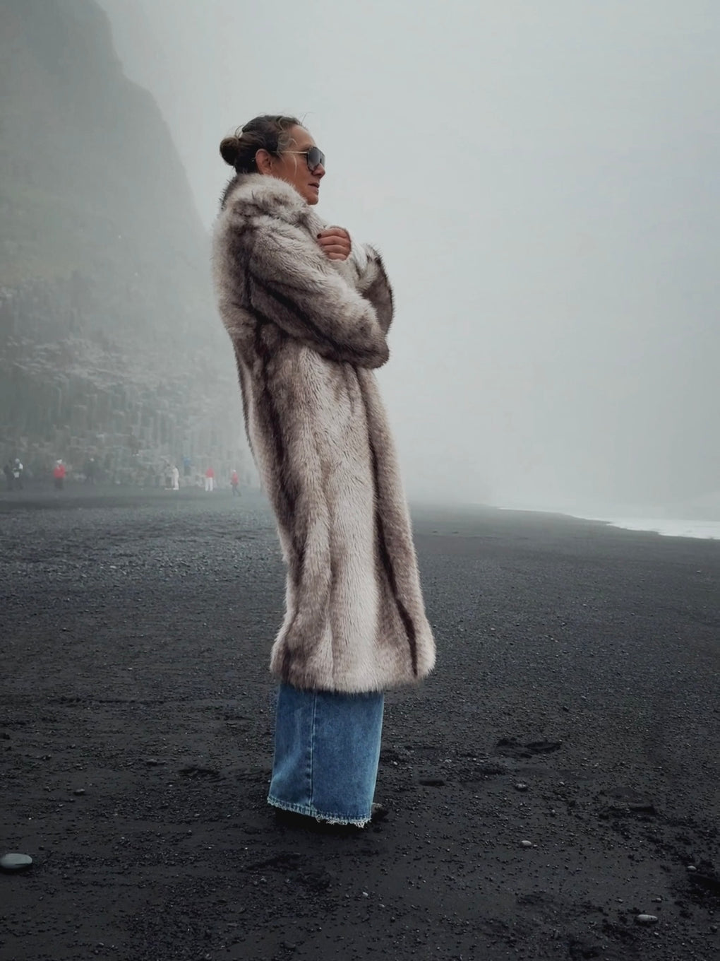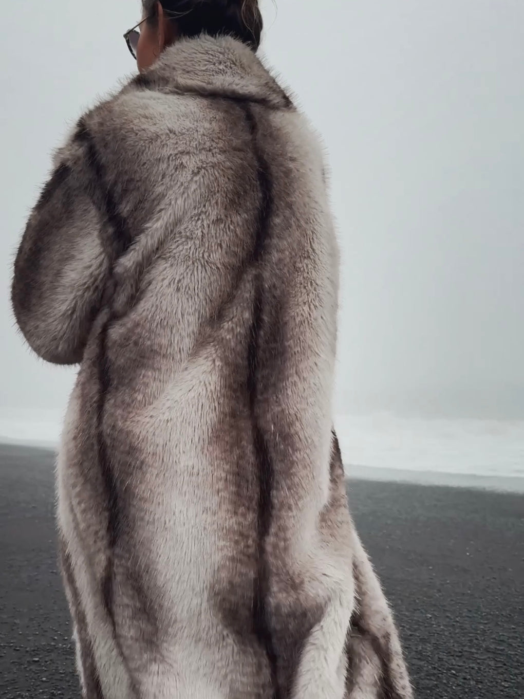 FAUX FUR LONG COAT - GREY