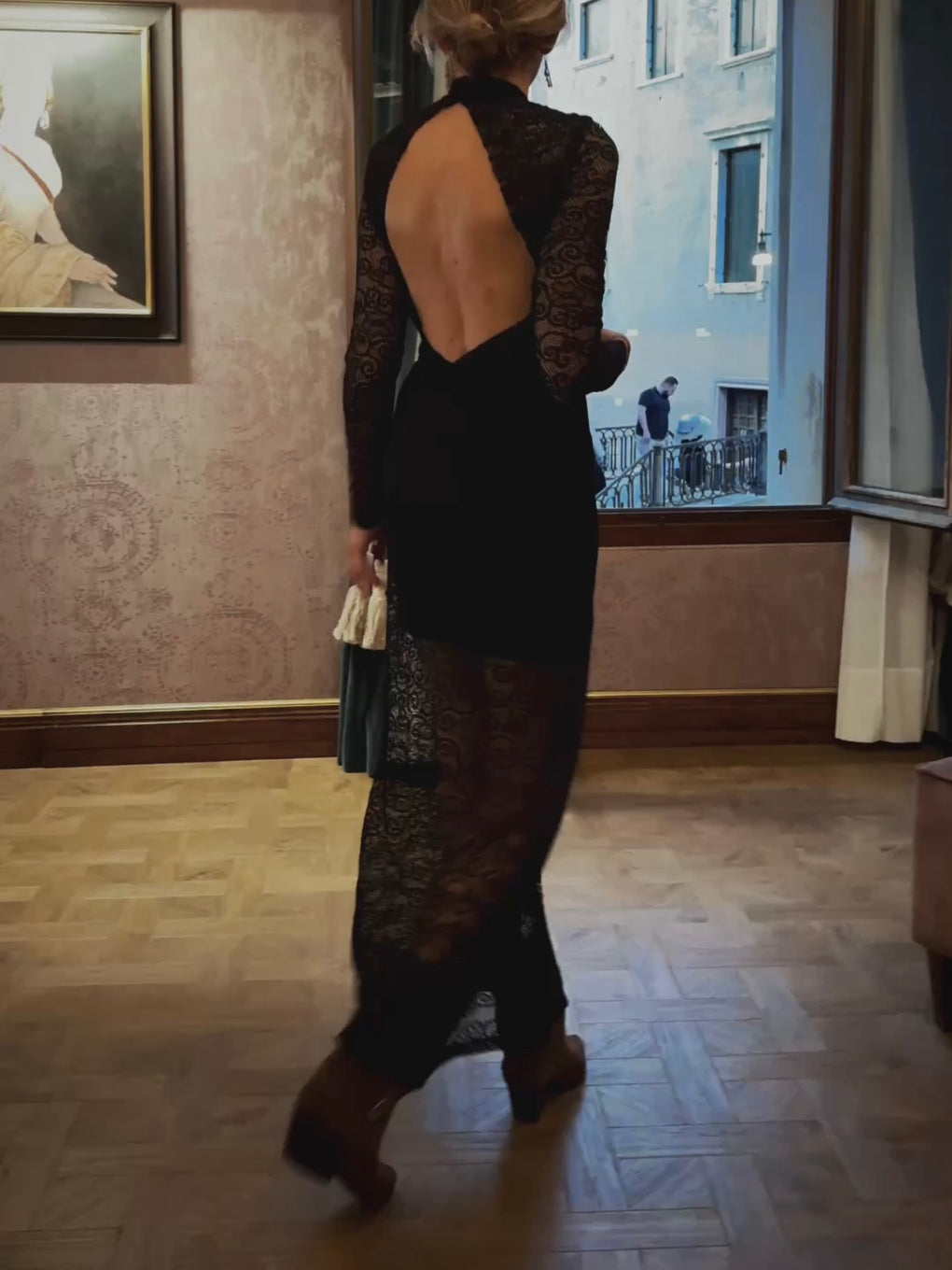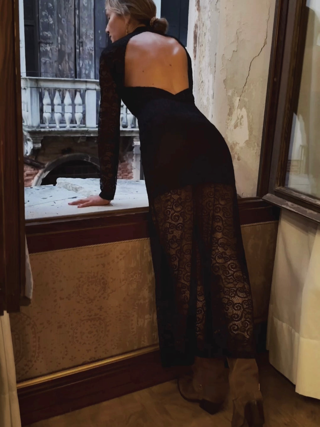 LACE TUBE DRESS WITH OPEN BACK - BLACK