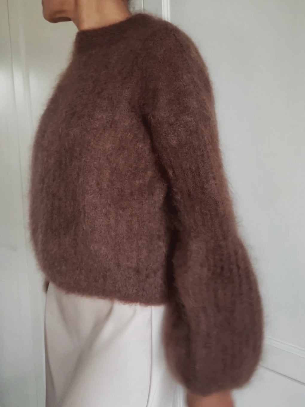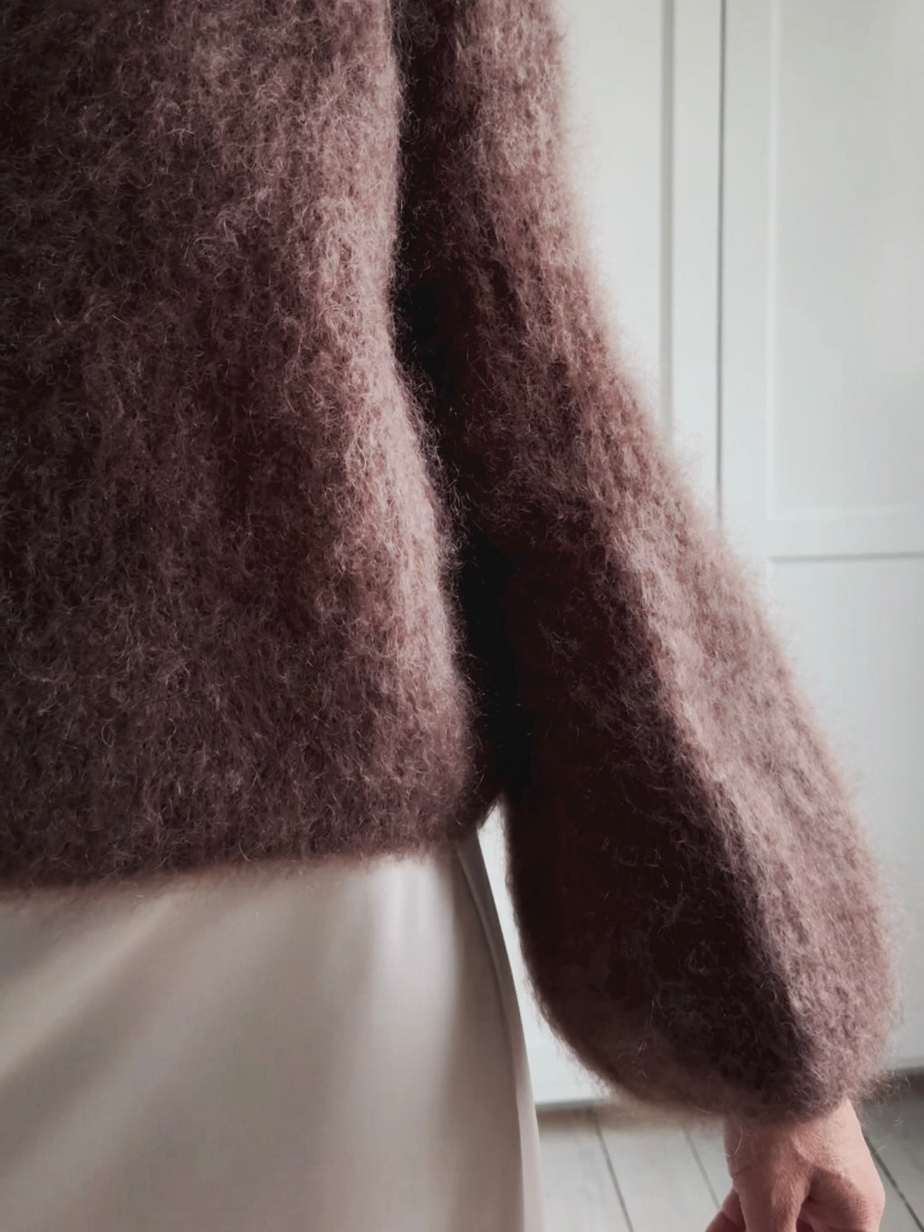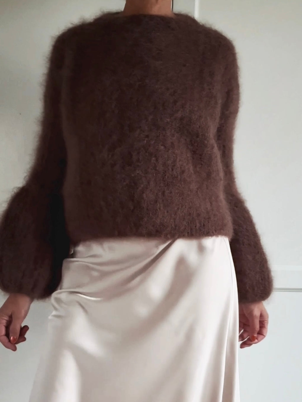KID MOHAIR KNIT WITH SLEEVE DETAIL - DARK BROWN