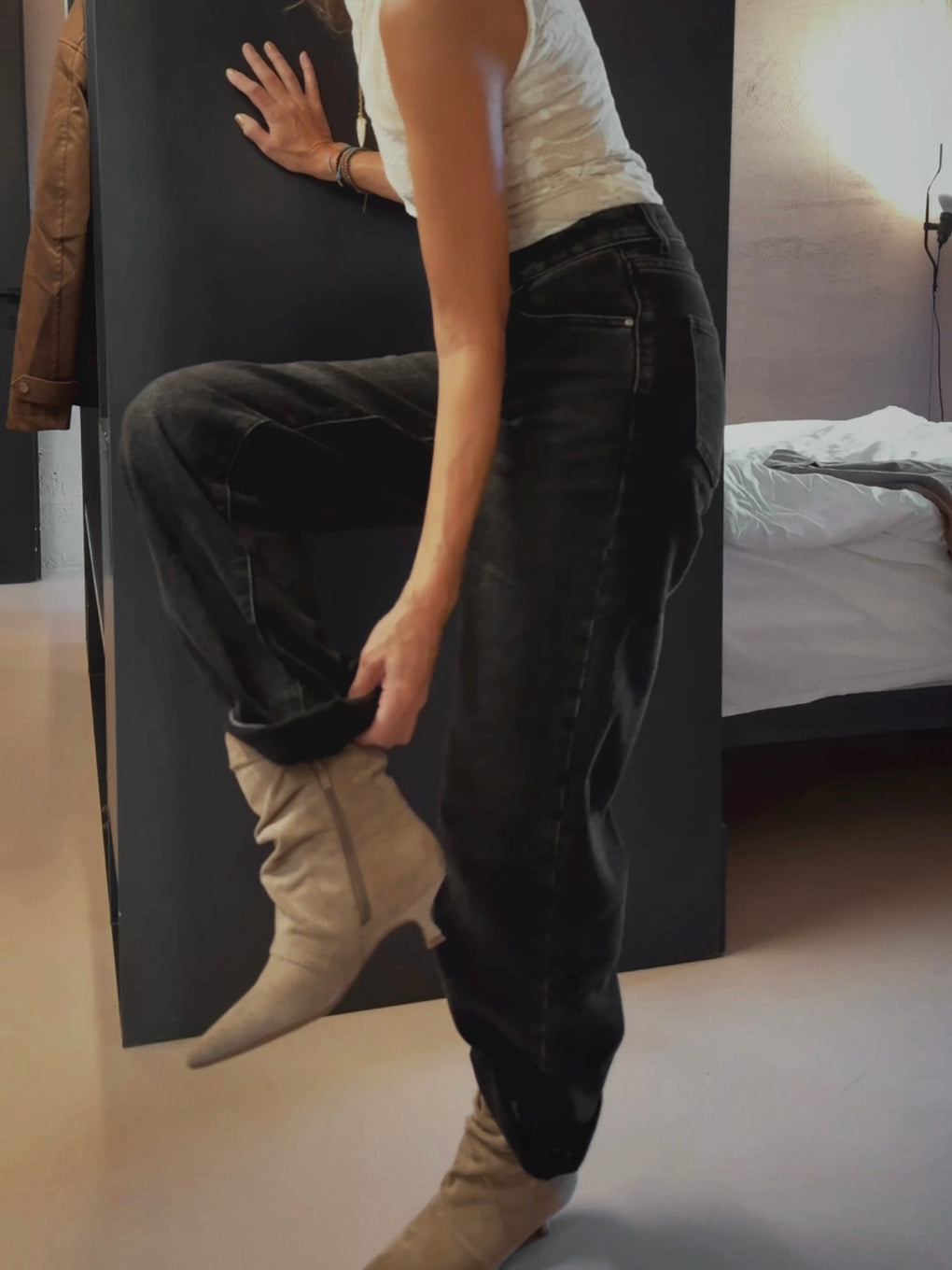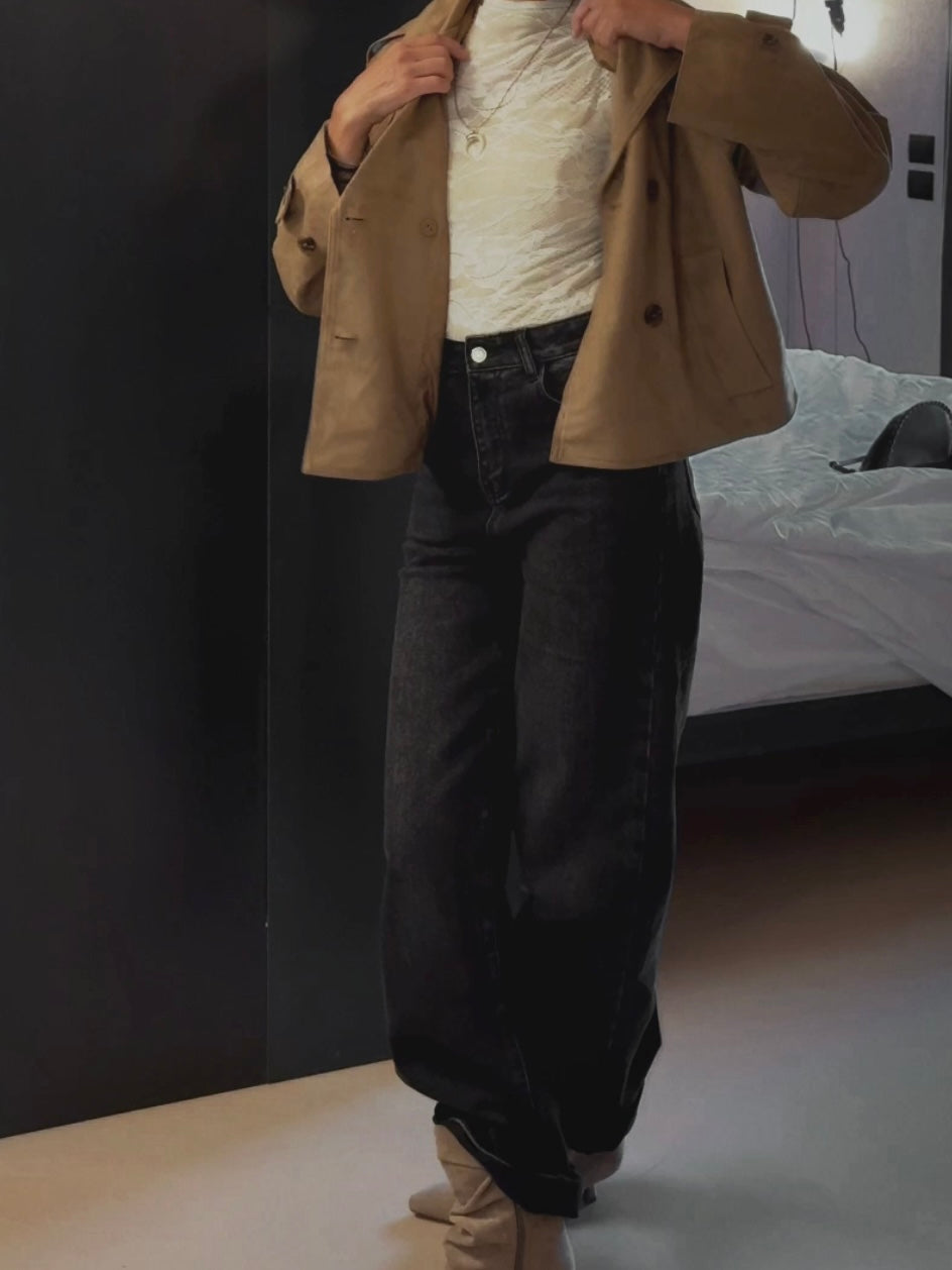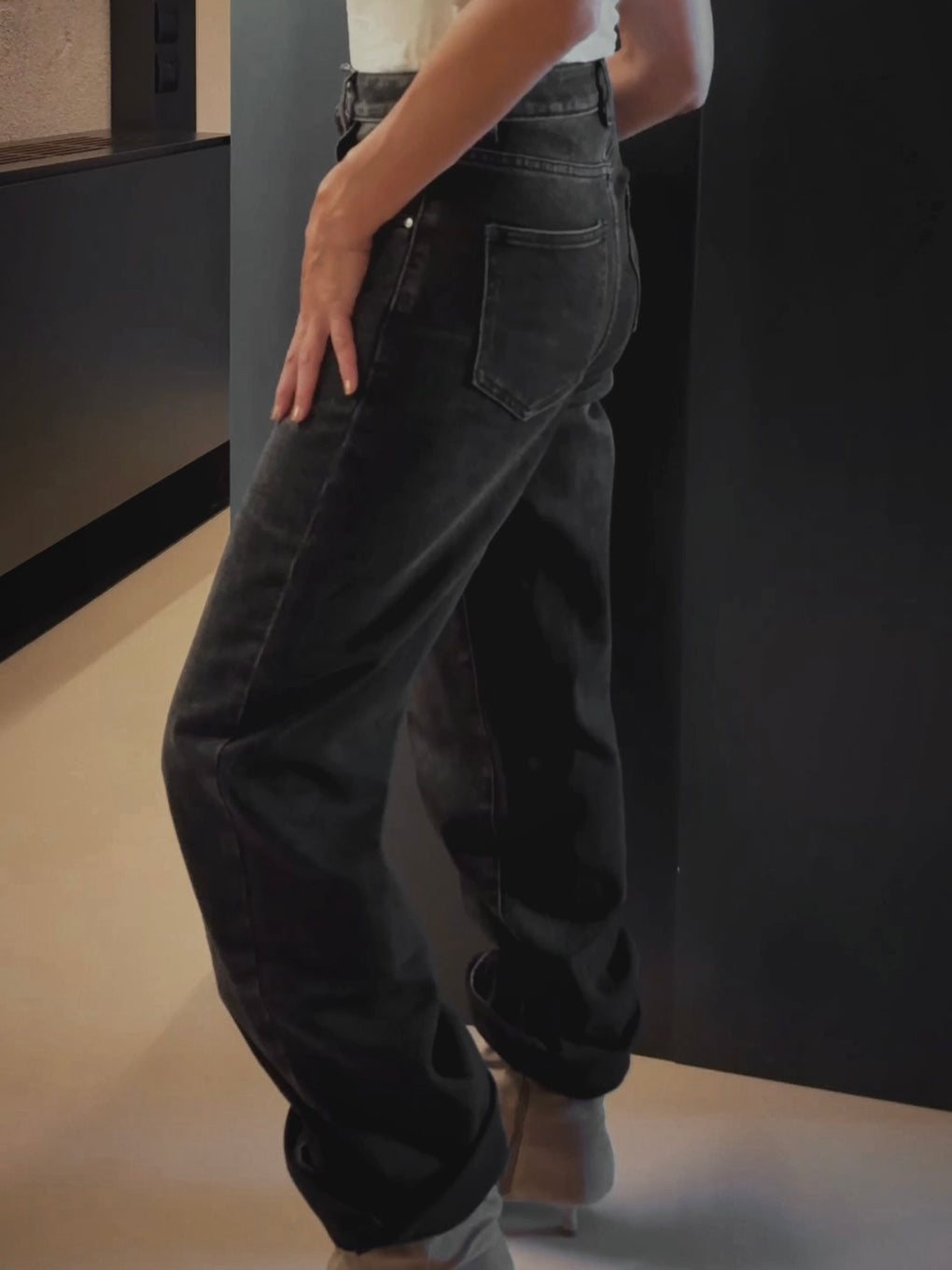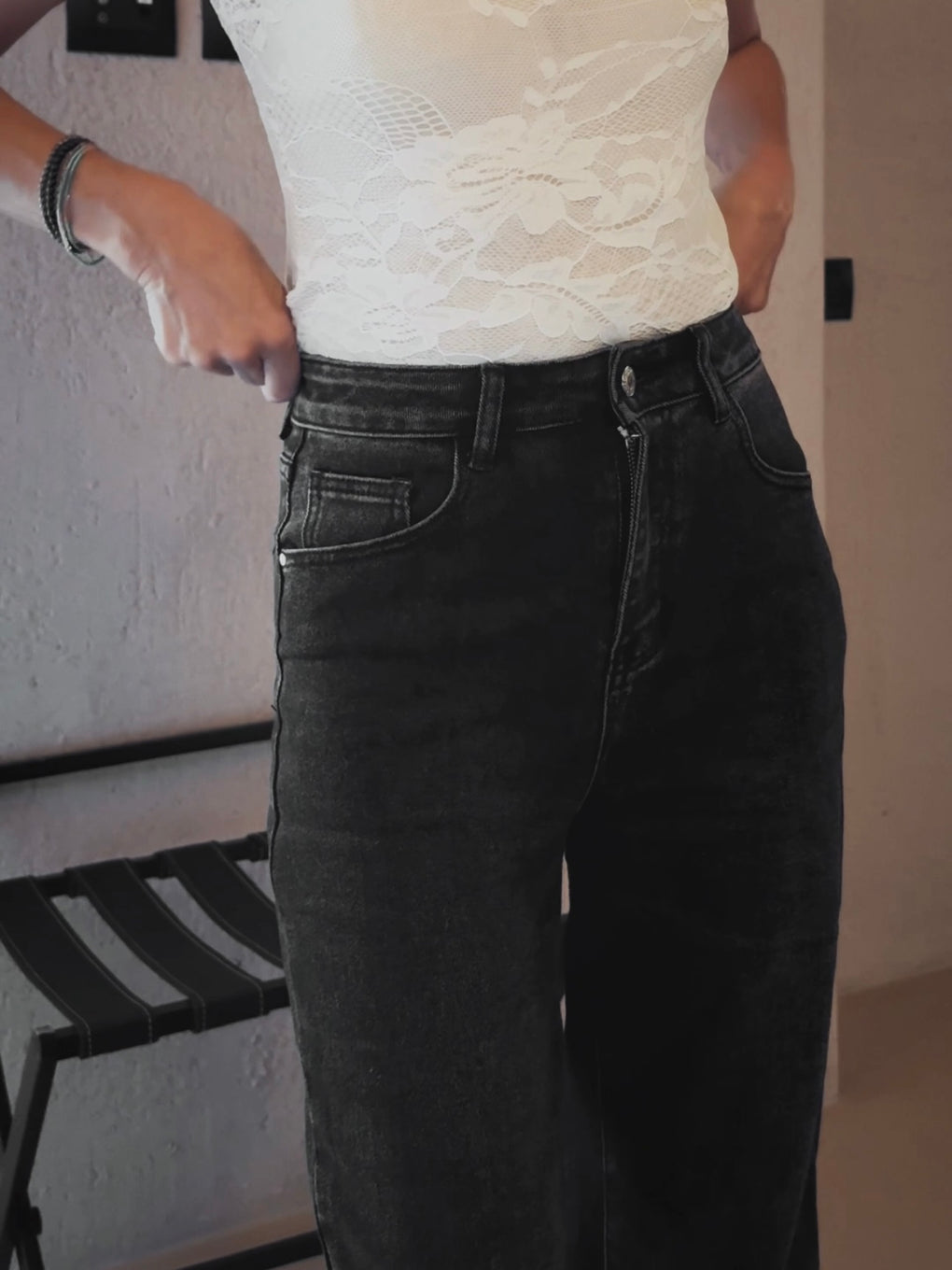MID WAIST JEANS STRAIGHT LEG - WASHED BLACK