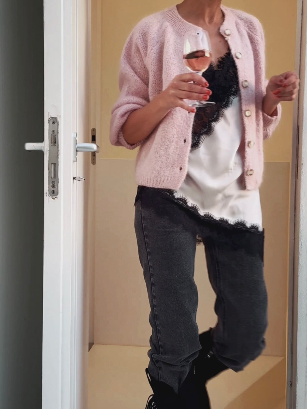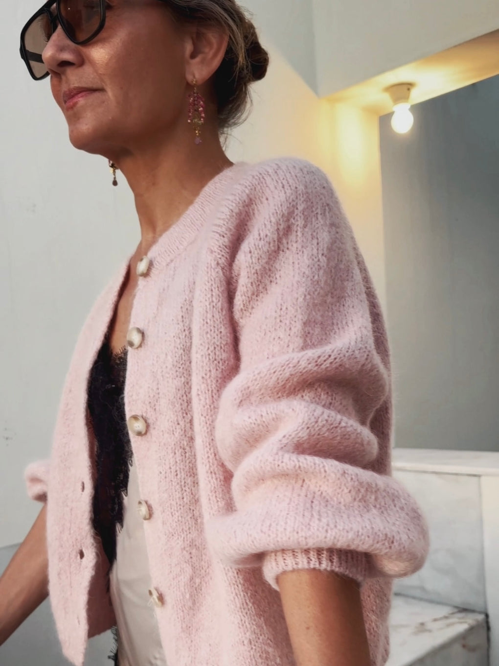 MOHAIR CARDIGAN ROUND NECK - PINK